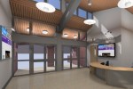 The work environment for medical and healthcare office space for staff and especially MD associates is usually the reality of a small closet. Flextime workstations will always equate to wherever you can set the laptop with a good WIFI signal. This Flextime work area has been designed to use natural light with a window line of 10′ in an impossible corner with some landscape as a view. This makes a great space for end of day patient exam transcription, charts and communication.